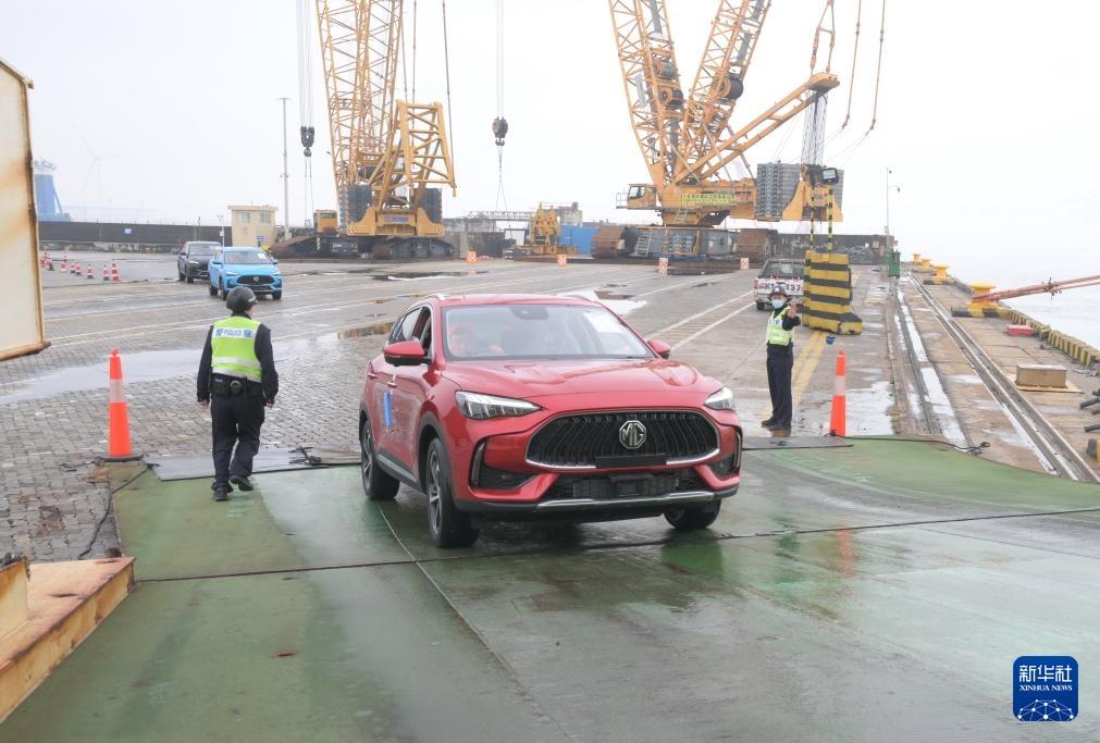 Die Beamten von CII (China Immigration Inspection) in Fuqing überwachen die Verladung von Fahrzeugen. (Foto vom 30. Januar, Lin Shanchuan/Xin Hua)