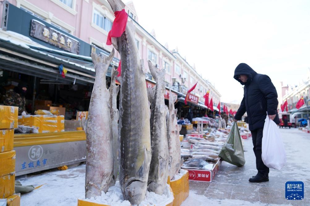 Die Kunden suchen sorgfältig gefrorene Fische aus. (Foto vom 31. Januar Wang Jianwei/Xin Hua)
