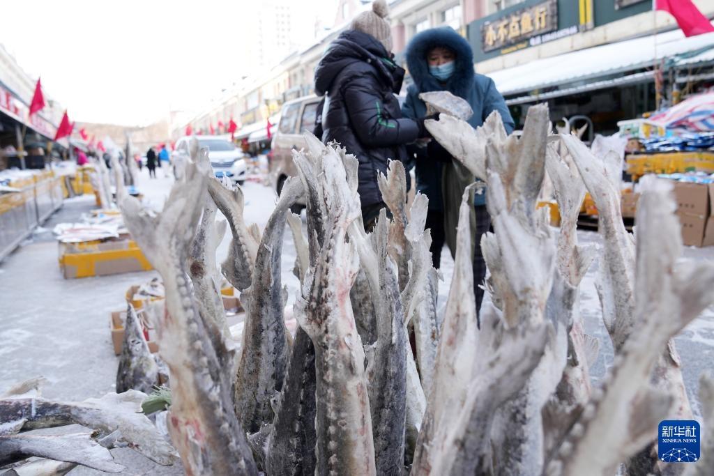 Die Kunden suchen sorgfältig gefrorene Fische aus. (Foto vom 31. Januar Wang Jianwei/Xin Hua)