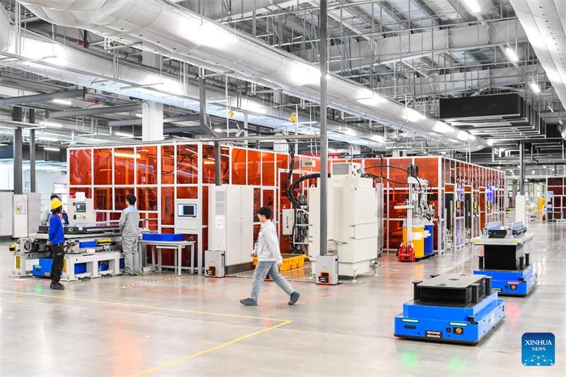 Neue FAW-BYD-Batterieproduktionsanlage in Changchun, der Hauptstadt der nordostchinesischen Provinz Jilin, am 2. Februar 2024. Die Anlage, in die Chinas führender Automobilhersteller First Automotive Works (FAW) und der führende Hersteller von Neue Energie-Fahrzeugen (NEV) BYD gemeinsam investiert haben, wurde am Freitag in Changchun, der Hauptstadt der nordostchinesischen Provinz Jilin, in Betrieb genommen. (Xinhua/Xu Chang)