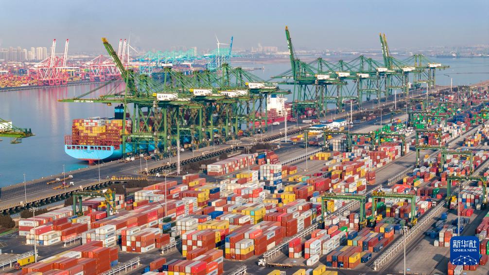 Das Drohnenfoto zeigt das Pacific International Container Terminal (PICT) im Hafen von Tianjin. (Foto vom 2. Februar, Zhao Zishuo/Xinhua)