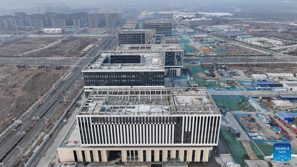 Die Baustelle des China Mobile Xiong'an Smart City Wissenschafts- und Innovationszentrums in der Xiong'an New Area. (Foto vom 6. Februar 2024, Xinhua/Mu Yu)