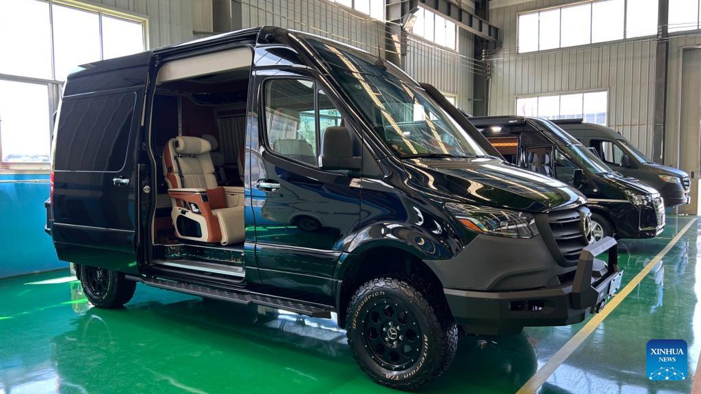 Dieses Foto vom 10. August 2023 zeigt Wohnmobile, die von Rongcheng Compaks New Energy Automobile Co. Ltd. in der ostchinesischen Provinz Shandong hergestellt werden. (Xinhua/Li Zhihao)
