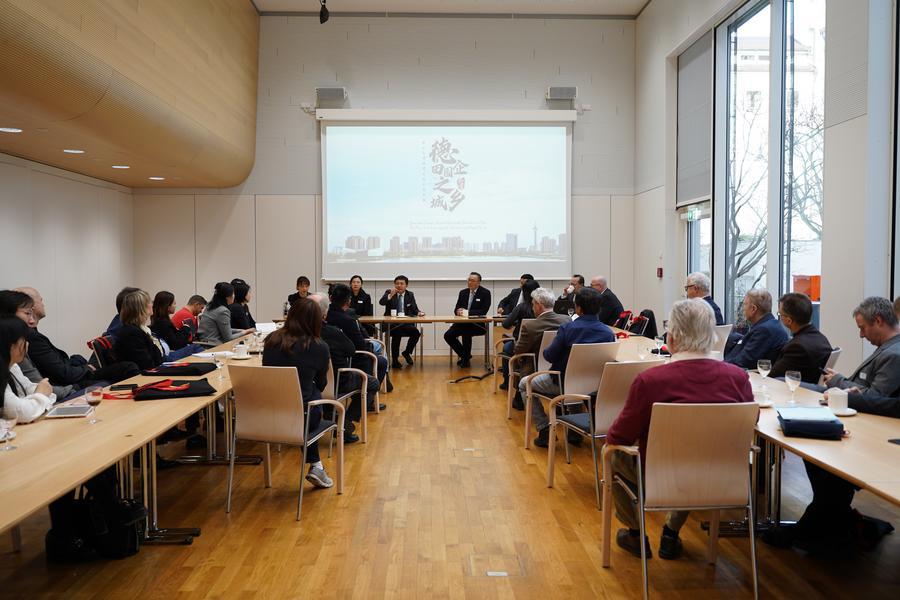 Eine Informationsveranstaltung zur Förderung der chinesisch-deutschen Zusammenarbeit, durchgeführt in München am 25. Januar 2024 von einer Delegation aus Taicang in der ostchinesischen Provinz Jiangsu. (Foto: Ge Chang/Xinhua)