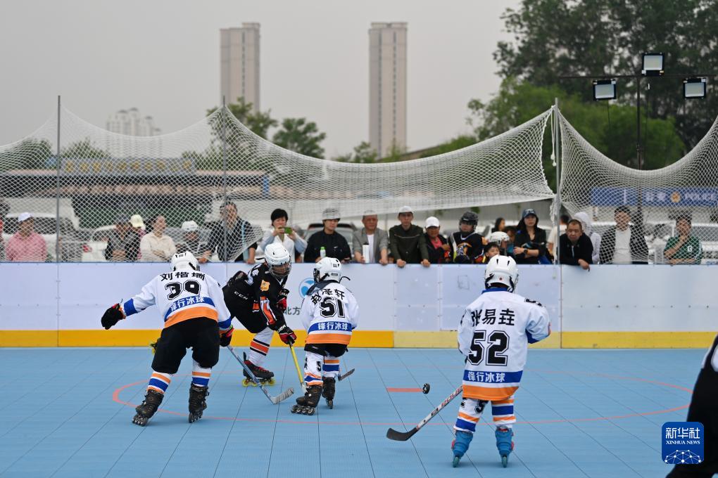 Kinder spielen Eisball im Sportpark Yuedong Chenxing in Tianjin. (Foto vom 5. Mai, Li Ran/Xinhua)