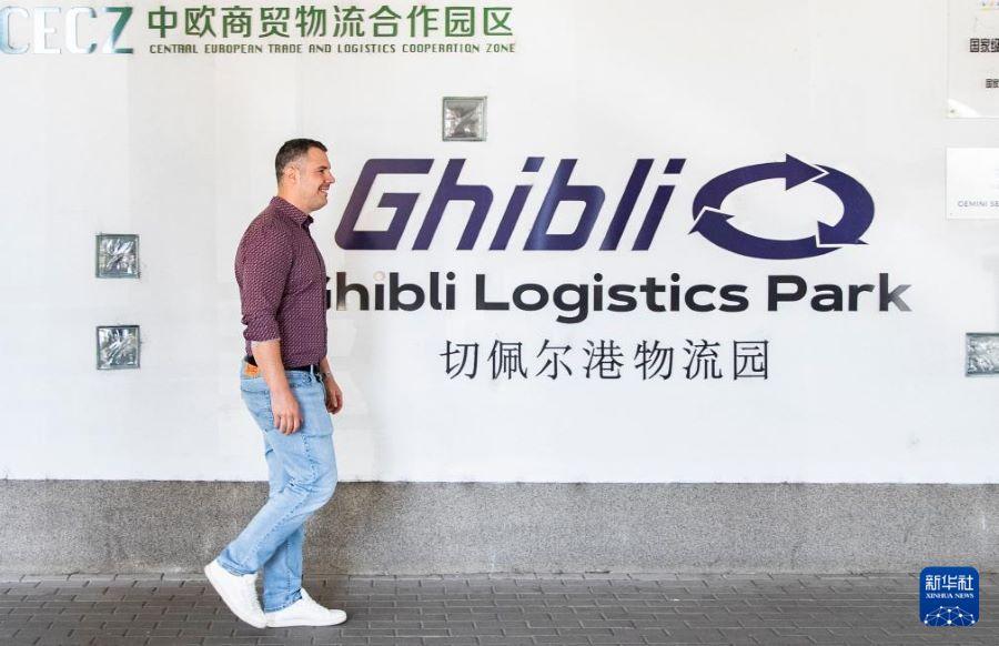 Ein Angestellter betritt das Bürogebäude des Ghibli Logistik Parks.(Fotovom 29. April, Zhang Fan/Xinhua)