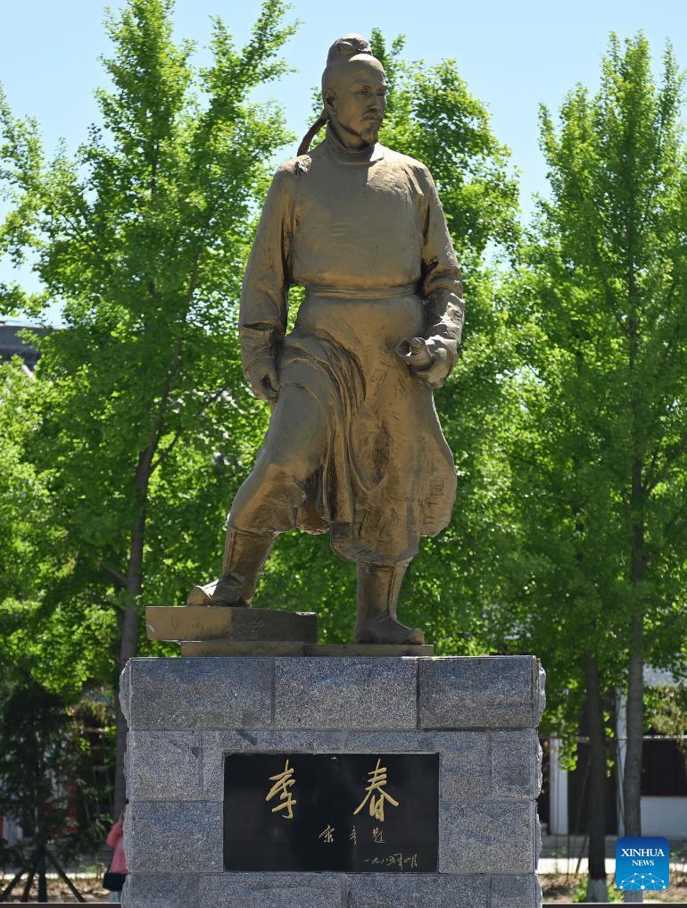 Das Foto zeigt eine Statue von Li Chun, dem Designer und Erbauer der Zhaozhou-Brücke. (Foto vom 24. April 2024, Xinhua)