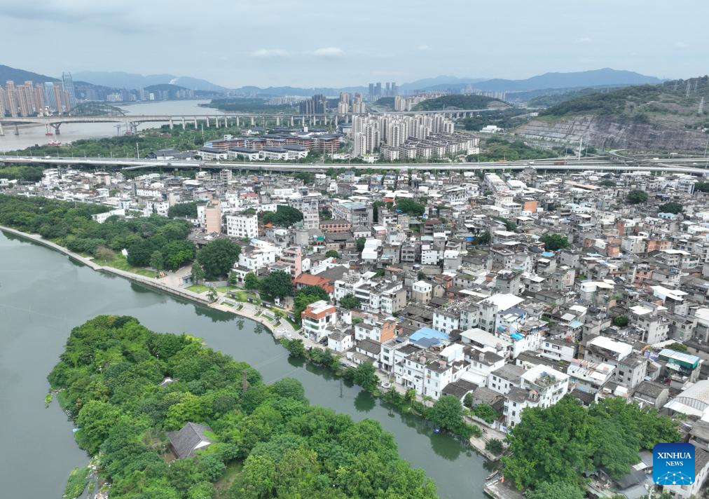 Das Drohnenfoto zeigt einen Blick auf das Dorf Linpu in Fuzhou. (7. Juni 2024, Xinhua)