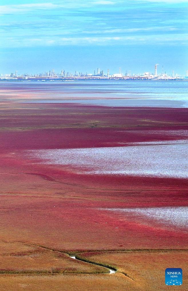 Ein Blick auf den malerischen Roten Strand in der Stadt Panjin in Liaoning. (11. September 2024, Xinhua)
