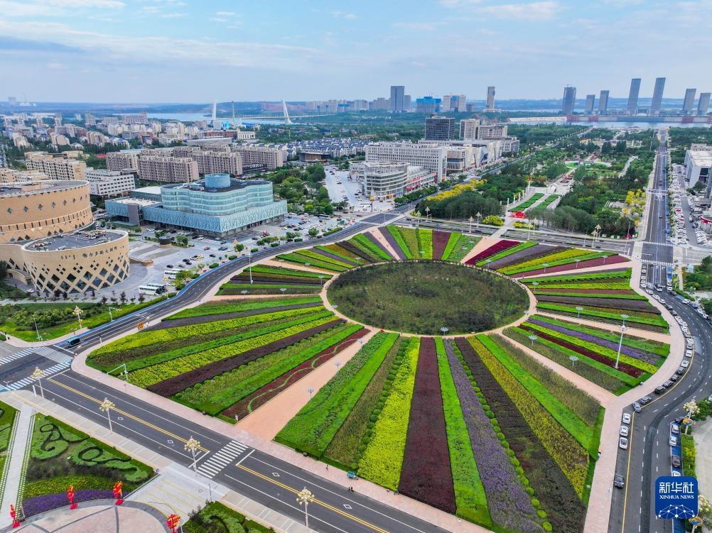 Die nordchinesische Stadt Ordos aus der Vogelperspektive