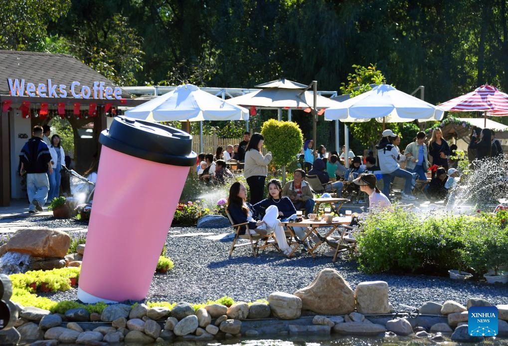 Touristen amüsieren sich in einem Café im Vorort Pinggu von Beijing. (2. Oktober 2024, Xinhua)
