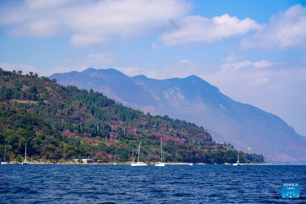Das Foto zeigt die schöne Landschaft des Fuxian-Sees. (12. Januar 2025, Xinhua)