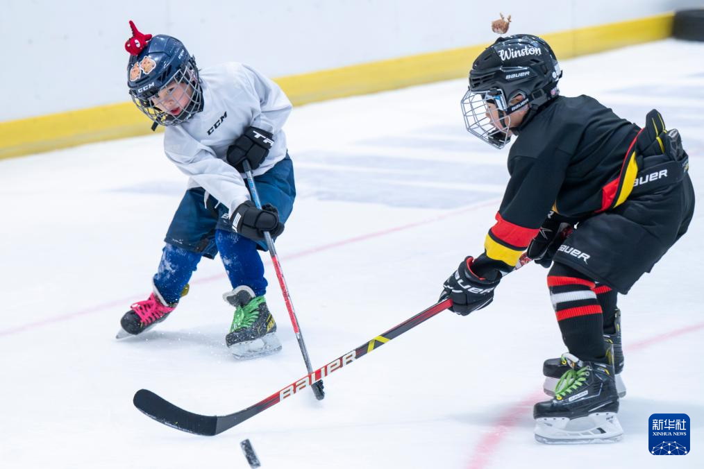 Kinder beim Eishockey-Training in einem Eissportzentrum in der Stadt Wuhan. (Foto: Xinhua/ Wu Zhizun)