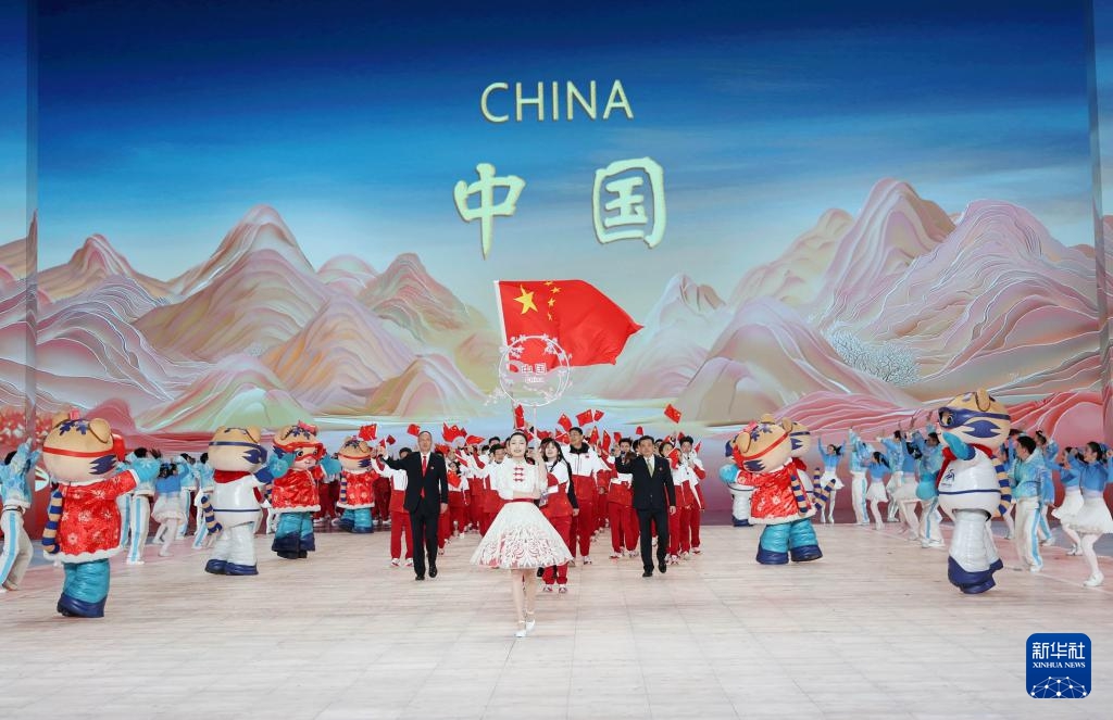 Die chinesische Sportdelegation betritt während der Eröffnungsfeier das Stadion. (7. Februar 2025, Xinhua)