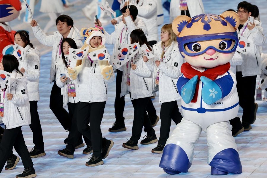 Das Bild zeigt die Sportdelegation aus Südkorea bei der Eröffnungszeremonie. (7. Februar 2025, Xinhua)