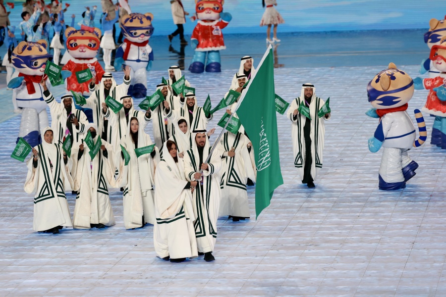 Das Bild zeigt die Sportdelegation aus Saudi-Arabien bei der Eröffnungszeremonie. (7. Februar 2025, Xinhua)