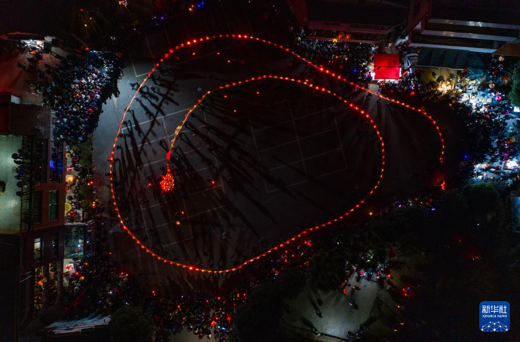 Der „Laternendrache“ patroulliert im ganzen Dorf, in der Hoffnung, dass er dem Dorf Glück bringen wird. (Foto vom 10. Februar 2025, Xu Yi/Xinhua)