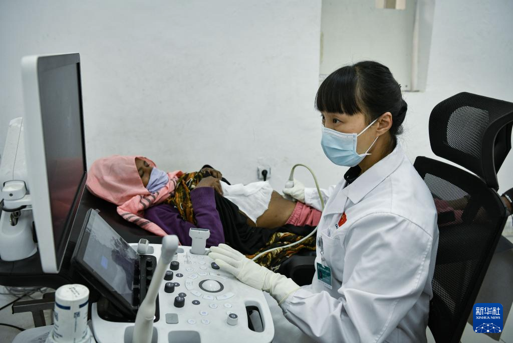 Die chinesische Ärztin führt bei einer Patientin eine Ultraschalluntersuchung durch. (Foto vom 14. Februar 2025, Han Xu/Xinhua)