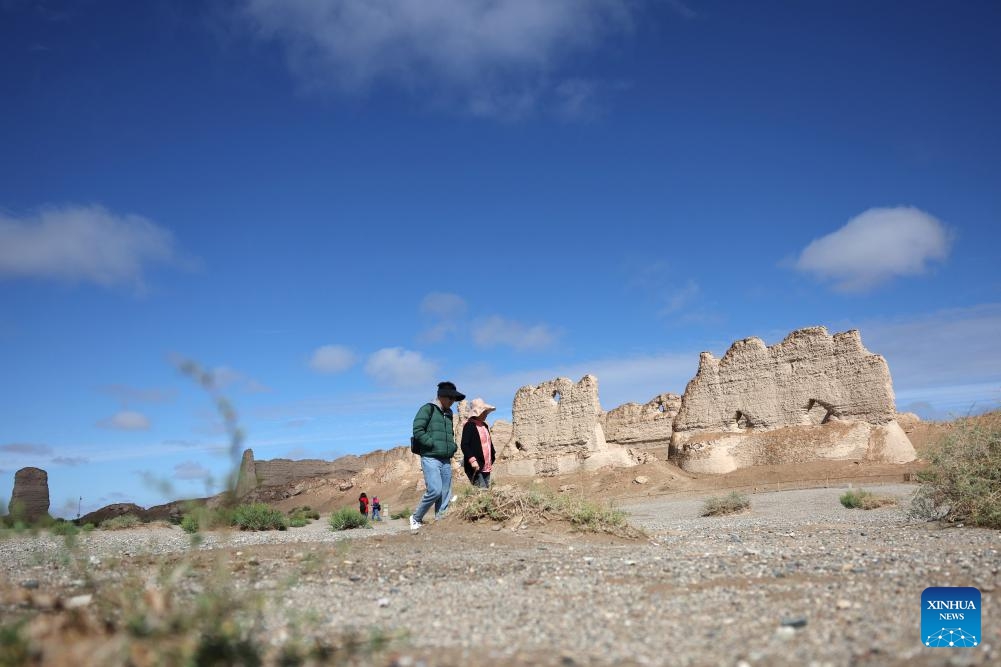 Touristen besuchen die Stätte des Yumen-Passes in Dunhuang. (4. September 2024, Xinhua)