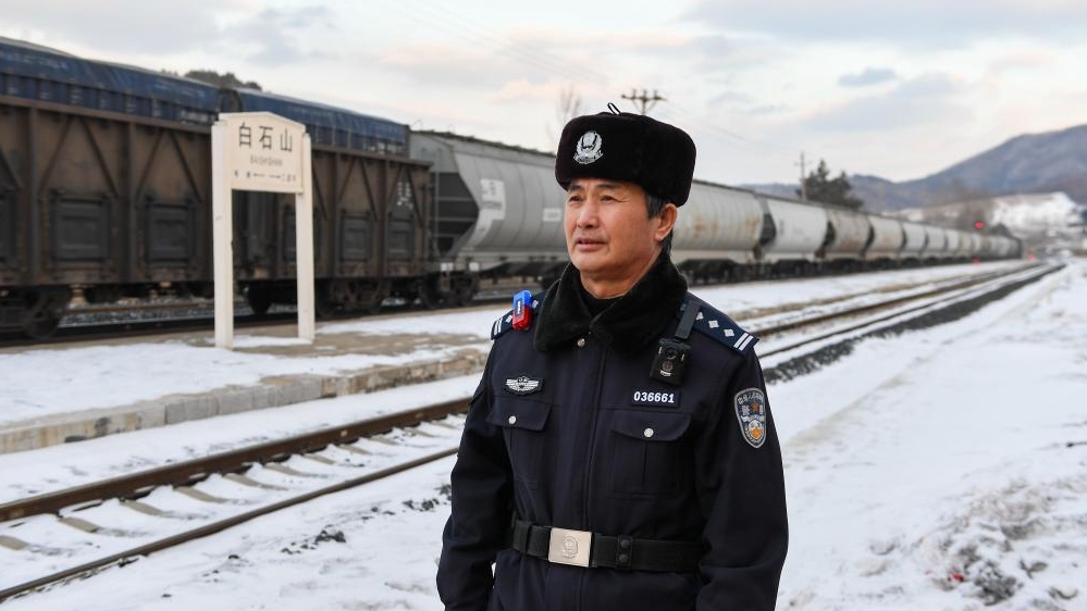 Obwohl der Frühling bereits begonnen hat, ist die Stadt Jiaohe in der nordostchinesischen Provinz Jilin immer noch verschneit. Yang Hongbin, ein Polizist der Polizeistation am Bahnhof Jiaohe der Jiliner Bahnpolizei, ging langsam die Bahngleise entlang und patrouillierte aufmerksam entlang der Strecke.