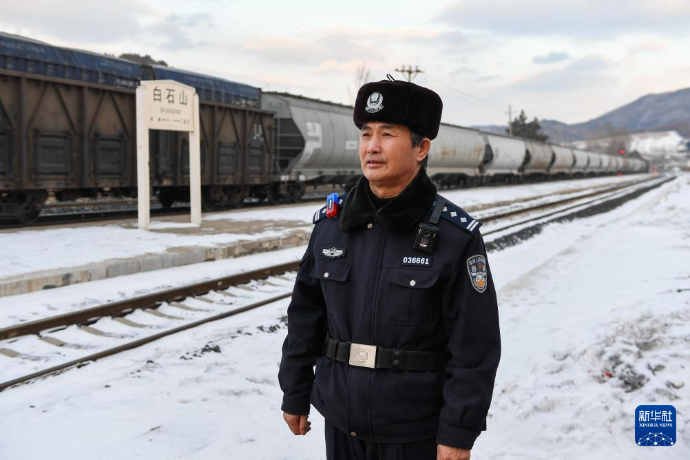 Yang ist im Dienst am Bahnhof Baishishan in der Stadt Jiaohe in der Provinz Jilin. (Foto vom 18. Februar 2025, Foto vom Zhang Nan/Xinhua)