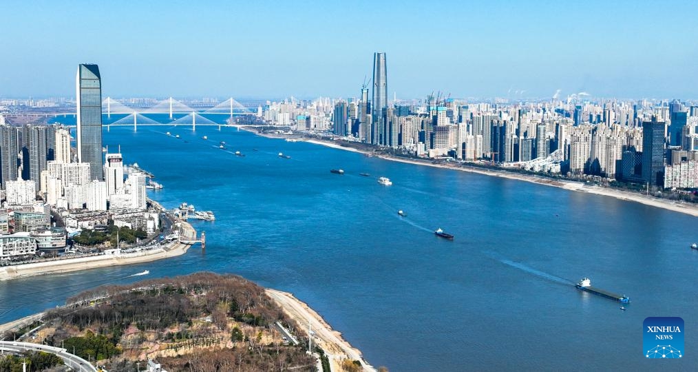 Die Luftaufnahme vom 23. Januar 2024 zeigt Schiffe auf dem Jangtse-Fluss in Wuhan. (Xinhua)
