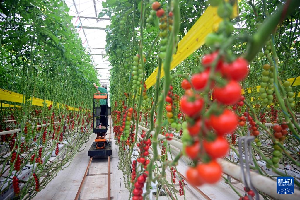 Mitarbeiter ernten Tomaten. (4. März 2025, Xinhua)
