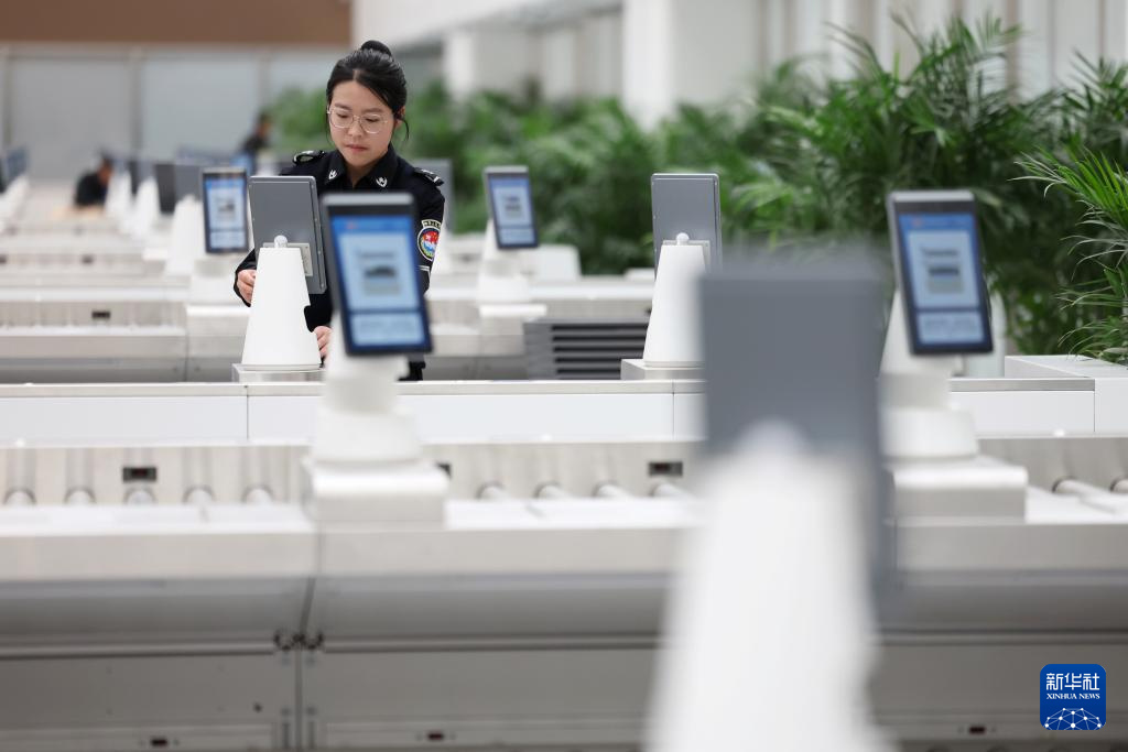 Eine Sicherheitsmitarbeiterin überprüft die Geräte im Sicherheitsbereich des Terminal 3 des Lanzhou Zhongchuan International Airport. (Foto vom 11. März 2025, Xinhua/Chen Bin)