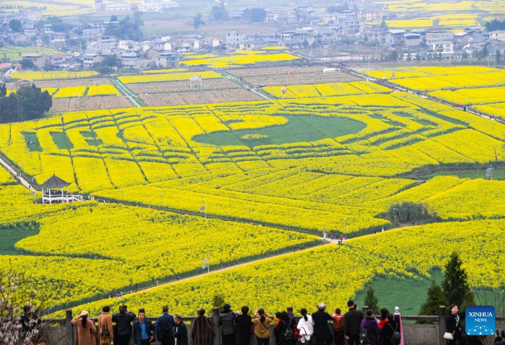 Touristen erfreuen sich an den Rapsblüten in Chongqing
