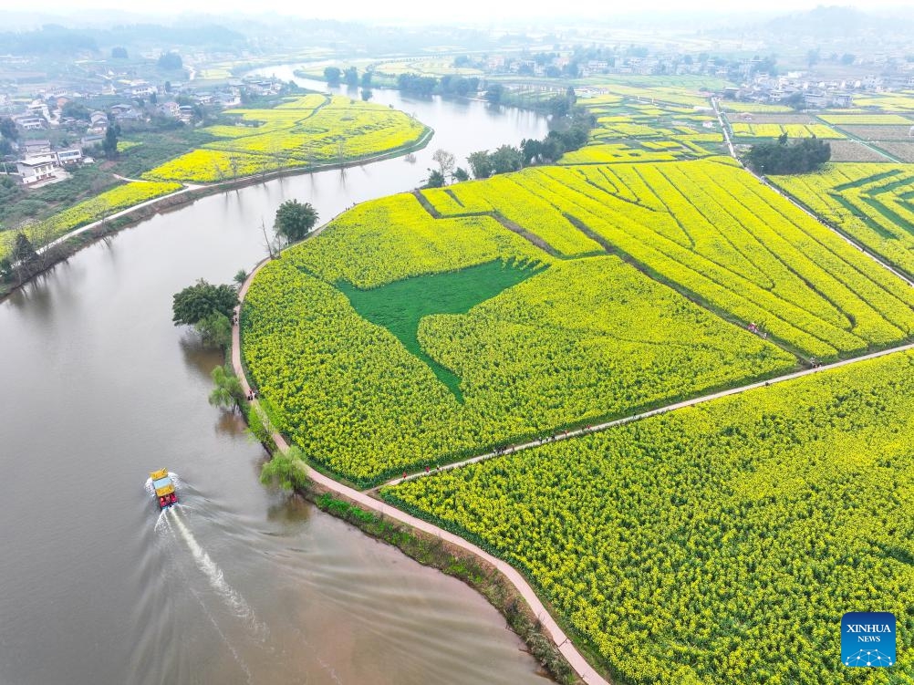 Touristen erfreuen sich an den Rapsblüten in Chongqing