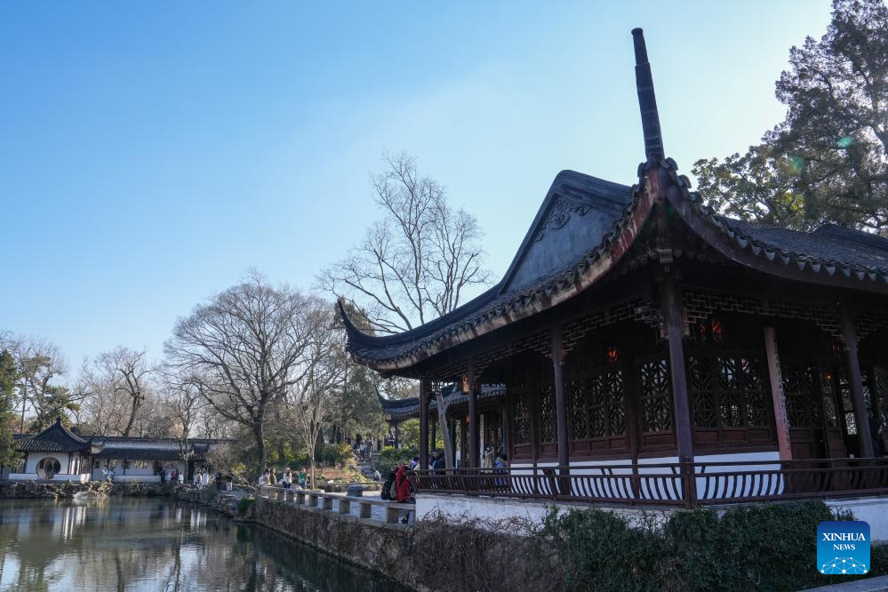 Touristen besuchen den Zhuozheng-Garten in Suzhou. (Foto vom 9. Januar 2025, Xinhua/Li Bo)