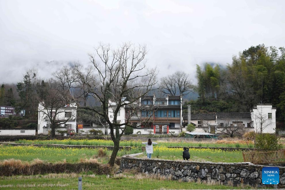 Eine Touristin posiert für ein Foto im Dorf Tachuan in Yixian. (13. März 2025, Xinhua)