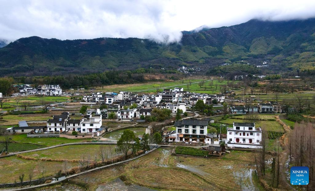 Das Luftbild zeigt die Landschaft des Dorfes Tachuan. (13. März 2025, Xinhua)