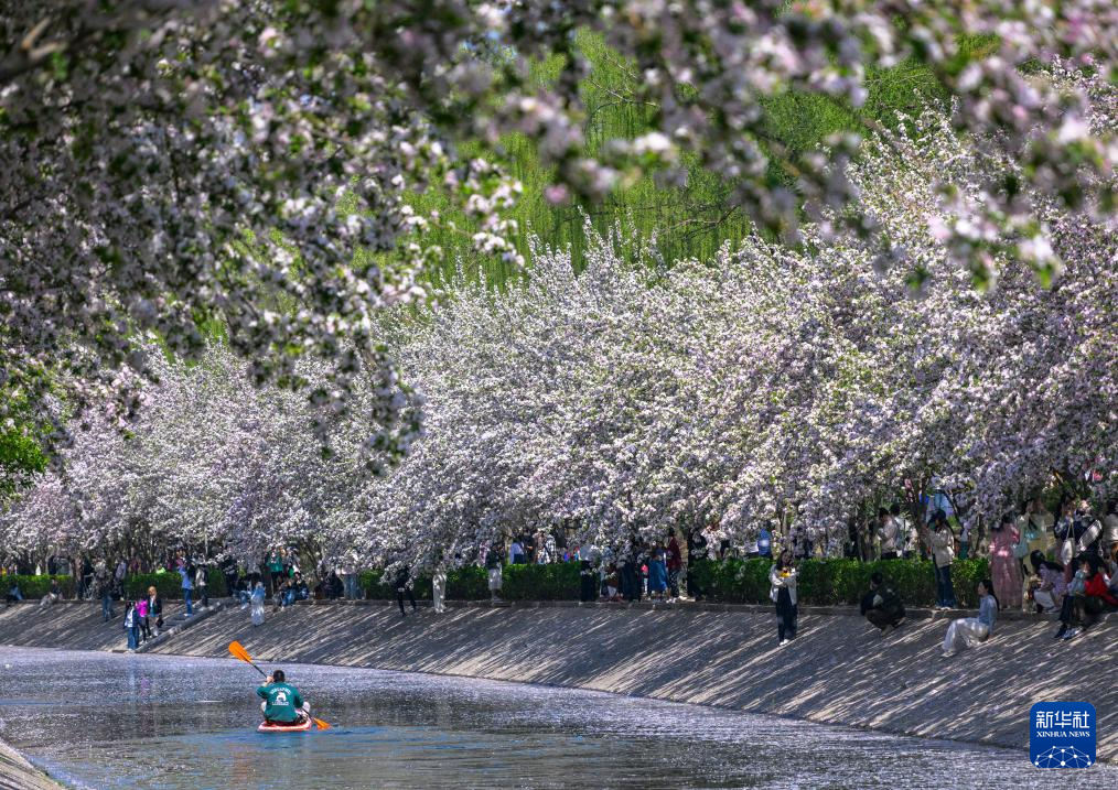 Menschen entspannen sich im Bezirk Wangjing in Beijing. (Foto vom 6. April 2025, Xinhua/Hu Jingwen)