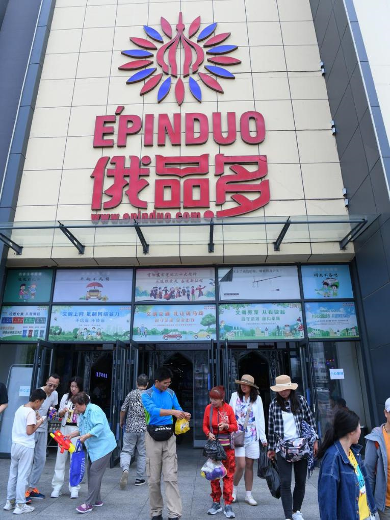Menschen stehen vor einem Supermarkt, der importierte Produkte verkauft, in Heihe, Provinz Heilongjiang im Nordosten Chinas, 9. August 2023. (Xinhua/Wang Song)