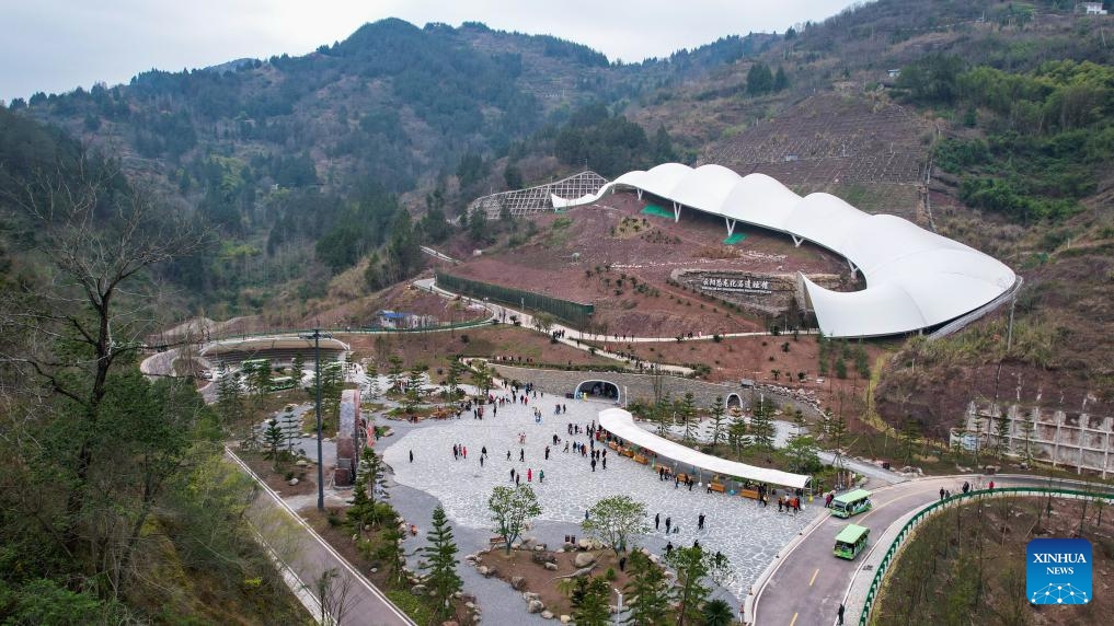 Die Luftaufnahme zeigt den Schutzraum für Dinosaurierfossilien vor Ort im Geopark Yunyang. (30. Januar 2025, Xinhua)