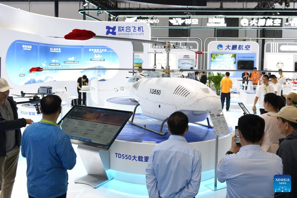 Menschen besuchen den Stand von United Aircraft. (15. April 2025, Xinhua)