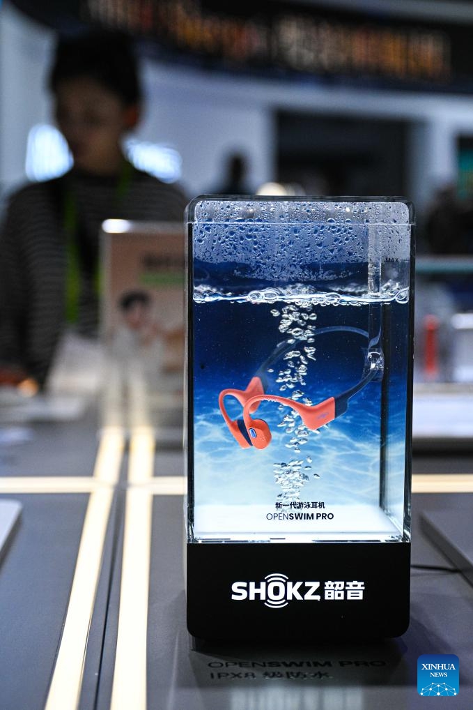 Das Foto zeigt wasserdichte Kopfhörer zum Schwimmen. (16. April 2025, Xinhua)