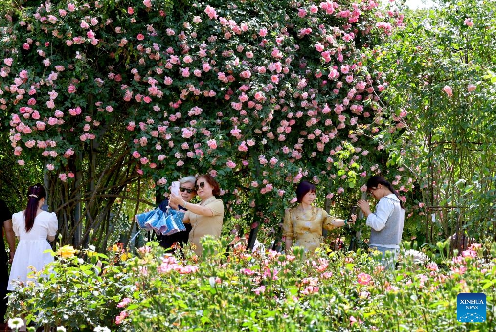 Menschen fotografieren chinesische Rosen im Botanischen Garten von Shanghai. (18. April 2025, Xinhua)