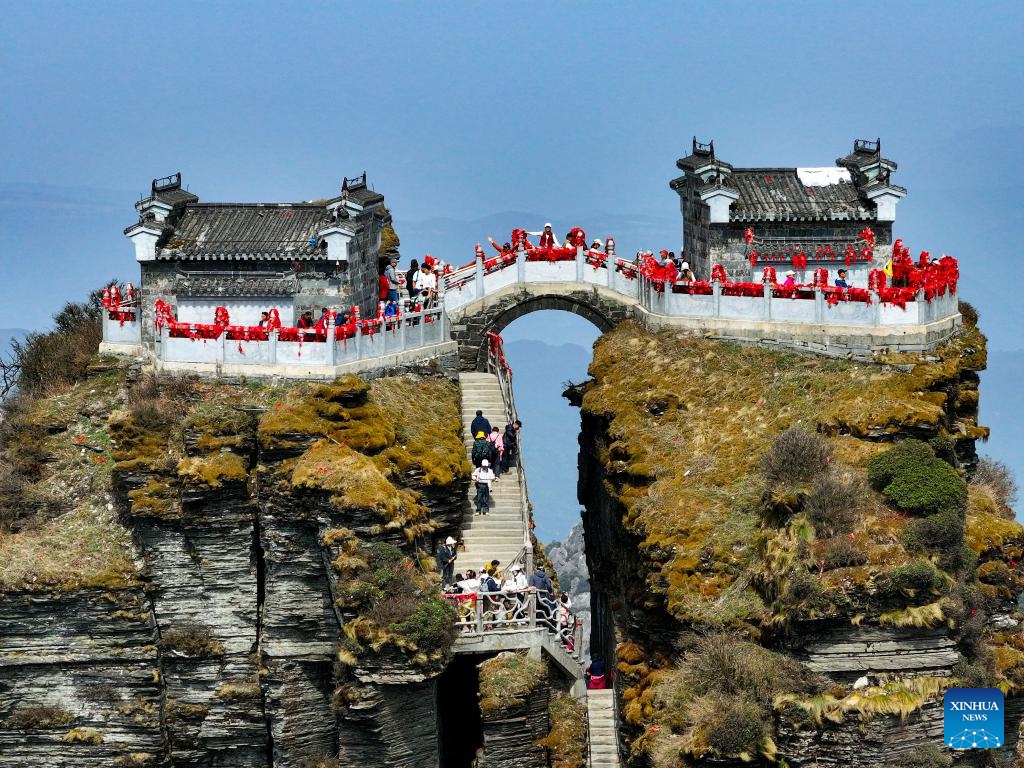 Touristen besuchen den Berg Fanjing. (15. April 2025, Xinhua)