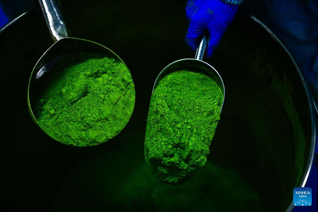 Matcha-Pulver wird in einer Fabrik in Jiangkou produziert. (14. April 2025, Xinhua)