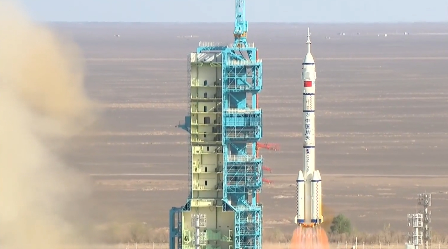 Das Raumschiff hob um 17:17 Uhr (Beijinger Zeit) mit einer Trägerrakete vom Typ „Langer Marsch 2F“ vom Satellitenstartzentrum Jiuquan im Nordwesten Chinas ab, wie die CMSA mitteilte.
