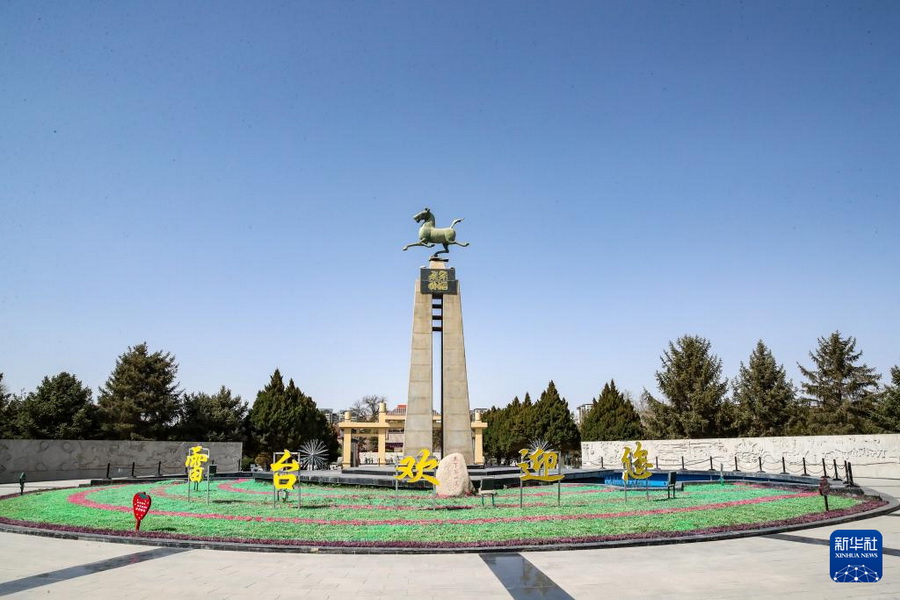 Das galoppierende Pferd aus Bronze vor dem Eingang zum Leitai-Mausoleum. (Foto: Lang Bingbing/ Xinhua)