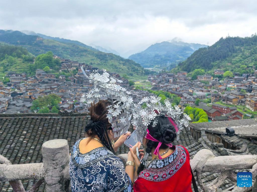Touristinnen besuchen das Miao-Dorf Xijiang Qianhu in der südwestchinesischen Provinz Guizhou. (Foto: Xinhua)
