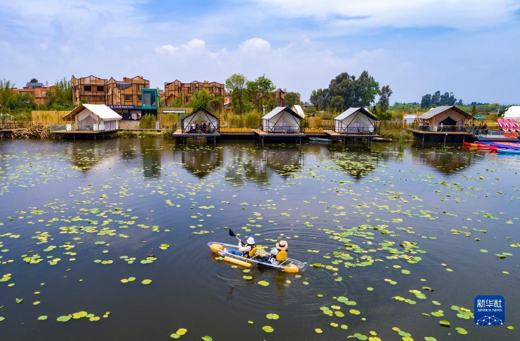 Touristen entspannen sich auf einer Bootsfahrt in der südwestchinesischen Stadt Kunming. (30. April 2023, Xinhua)