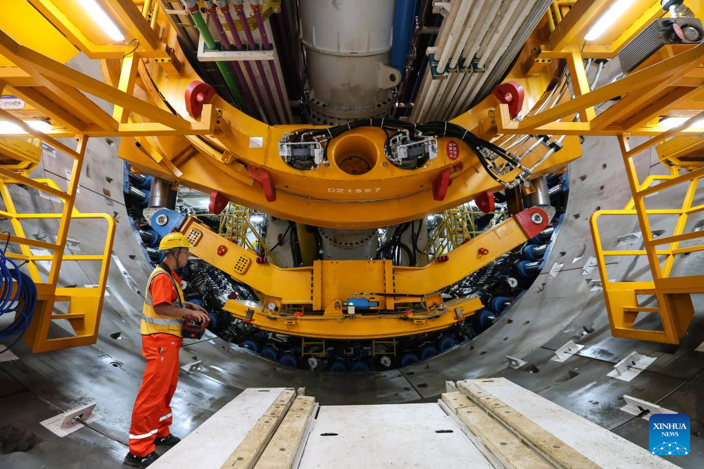 Ein Arbeiter steuert eine Großbohrmaschine beim Vortrieb der neuen Tunnelstrecke. (Foto vom 28. April 2025, Xinhua/Liu Dawei)