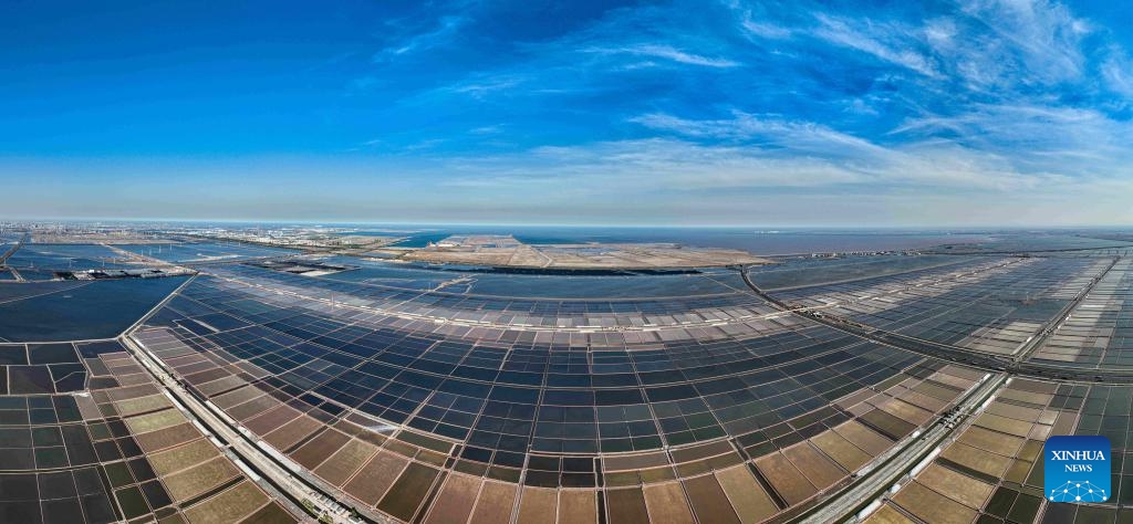 Die Luftaufnahme zeigt die Salinen der Tianjin Changlu Haijing Group. (27. April 2025, Xinhua)
