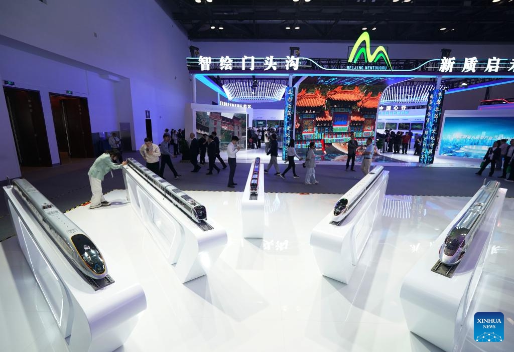 Modelle des Hochgeschwindigkeitszugs werden präsentiert. (8. Mai 2025, Xinhua)