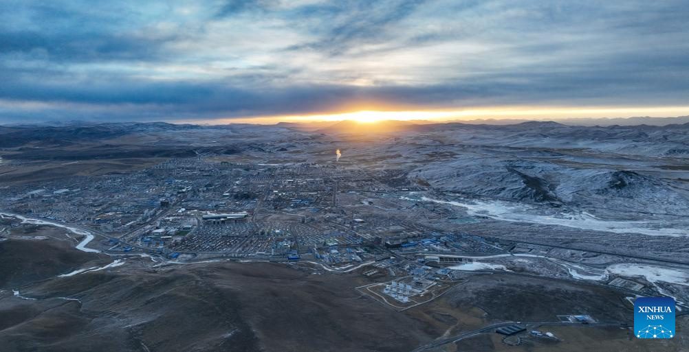 Die Drohnenaufnahme zeigt das Stadtzentrum von Nagqu. (Foto vom 12. Februar 2025, Xinhua/Jigme Dorje)