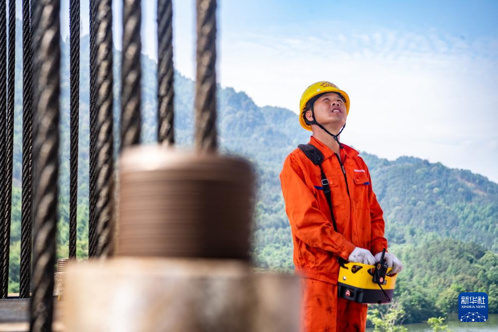 Ein Arbeiter bedient die Maschine per Fernsteuerung, um den letzten Kastenträger einzubauen. (Foto: Tang Yi/Xinhua)
